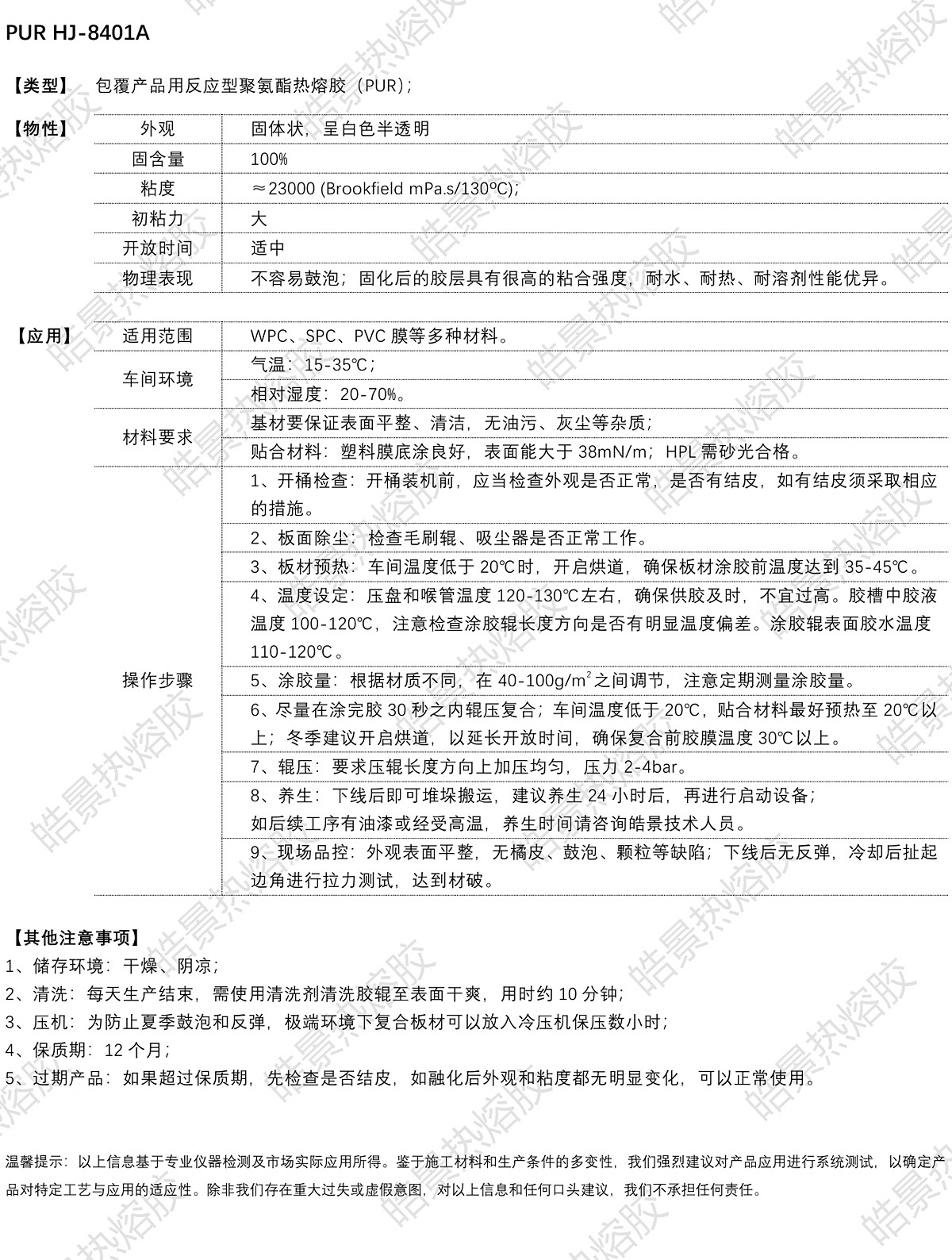 为了产品性能能充分匹配上胶需求,请详细告知施工方式、上胶工艺、粘着材质、产品应用环境等要求,以便我们能给您推荐适用且性价比高的热熔胶型号。只有了解您的每一项需求,我们才能用心服务好您的每个细节,才能全力支持您的每一次飞跃!